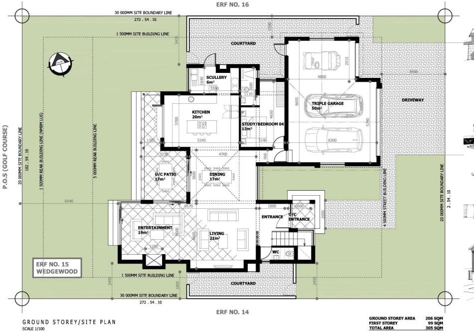 Encompassing 206m2 on the ground floor, the home welcomes you with an inviting undercover entrance leading into an elegant entrance hall with striking feature double-volume space. The open-plan layout offers defined spaces for the living room, dining area, and entertainment, seamlessly connected to two courtyards that enhance outdoor living. The kitchen is a chef's delight, complete with an offset scullery and space for three appliances, opening onto the one private enclosed courtyard. A versatile study or 4th bedroom with an en suite/ guest bathroom is conveniently located between the living area and garage, perfect for guests or as a home office.